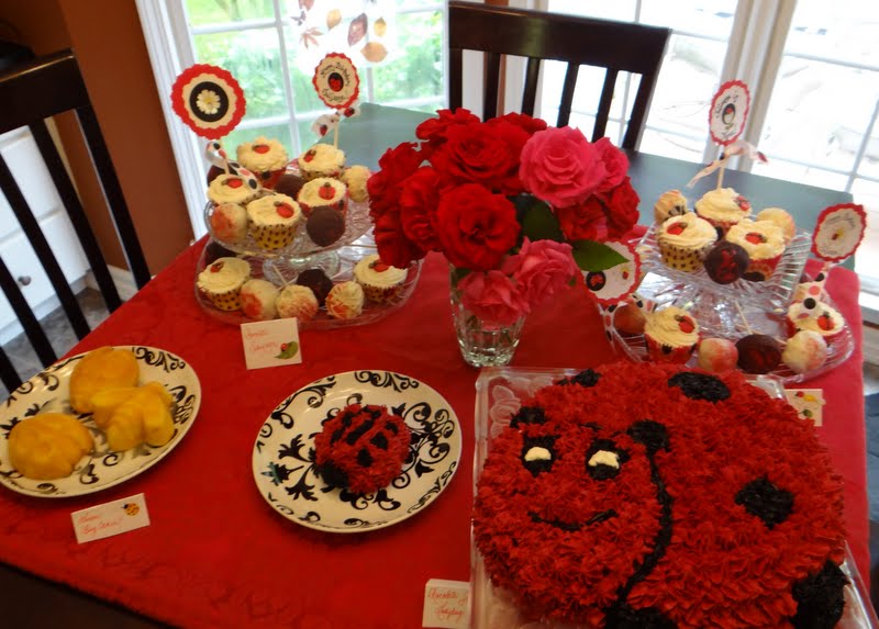 My daughter requested a ladybug party for her third birthday before she was even two-and-a-half. She excitedly would tell people, "I am going to have a ladybug birthday!" And so we did. I made cakepops, lemon bug cakes, lemon cupcakes, and strawberry-chocolate cake. I also did a dinner, since we had an evening party.
